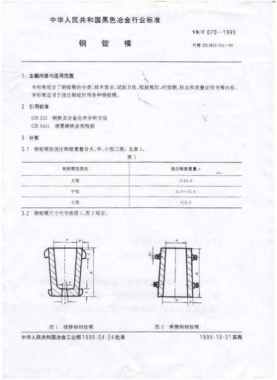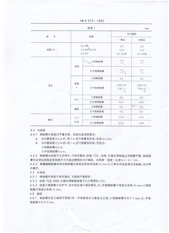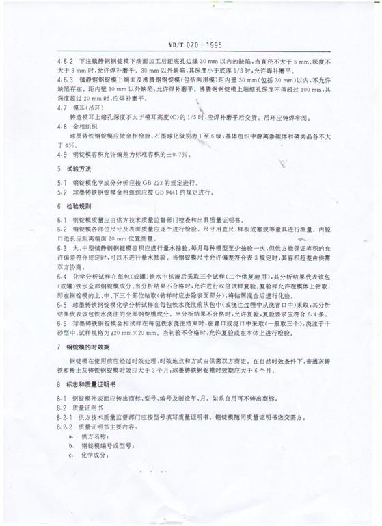 YB/T 070-1995鋼錠模生產(chǎn)標(biāo)準(zhǔn)-河鑄重工