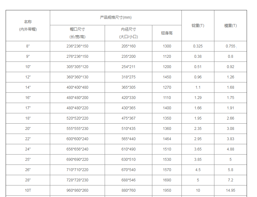 鋼錠模設計生產每個廠家根據自己具體生產要求,需求的形狀也是不一樣的。因此設計鋼錠模尺寸依據是錠子的尺寸。下面河鑄小編以方錠尺寸和方鋼錠模尺寸來為您解釋一下。(見下表格)